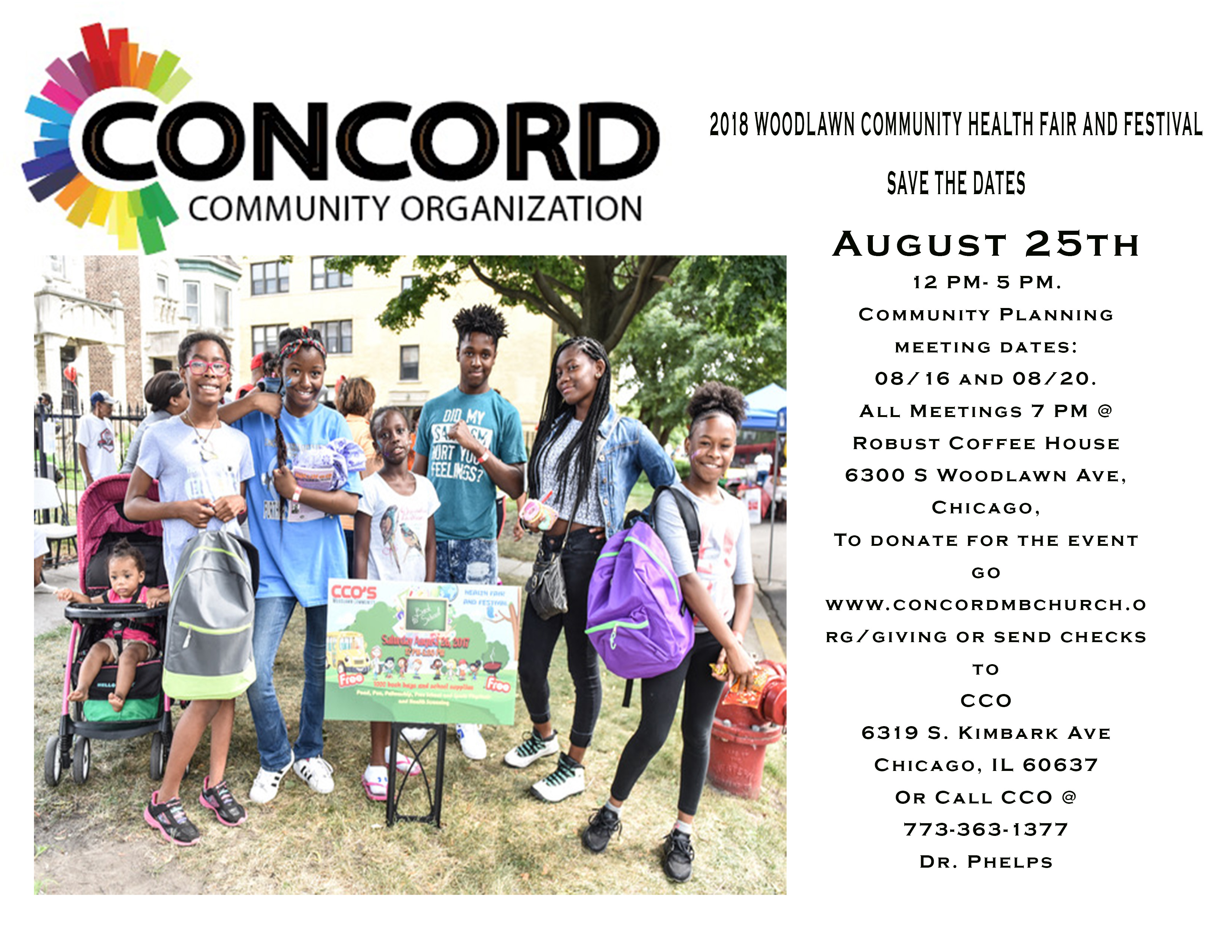 CCO Woodlawn Community Back to School Health Fair and Festival – Sat, 8/25 12-5 PM