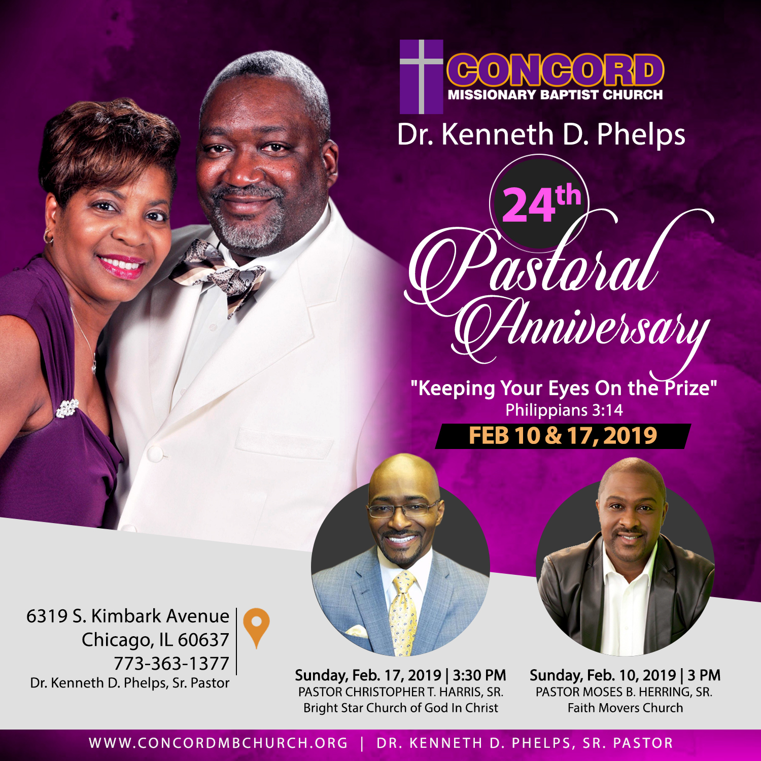 Pastor Kenneth D. Phelps 24th Year Pastoral Anniversary Celebration February 10, 2019 in Uncategorized Leave a Reply Cancel replyYour email address will not be published. Required fields are marked *Comment * Name * Email * Website Save my name, email, and website in this browser for the next time I comment.